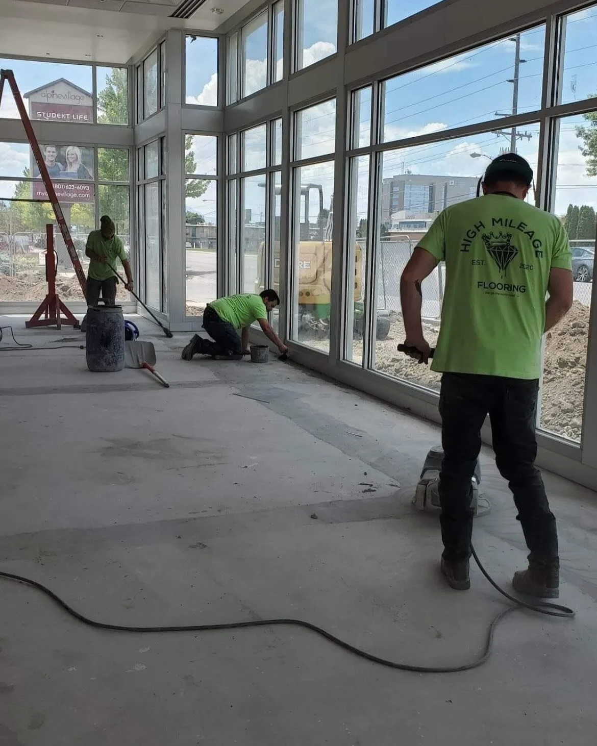 Based in Bountiful, Utah, High Mileage Flooring is a licensed and insured, family-owned company serving Northern Utah and beyond. We specialize in durable, high-performance flooring solutions including epoxy resin systems, polished concrete, metallic coatings, carpet tile, LVT, VCT, sheet vinyl, and full surface preparation services such as shot blasting, self-leveling, and demolition.